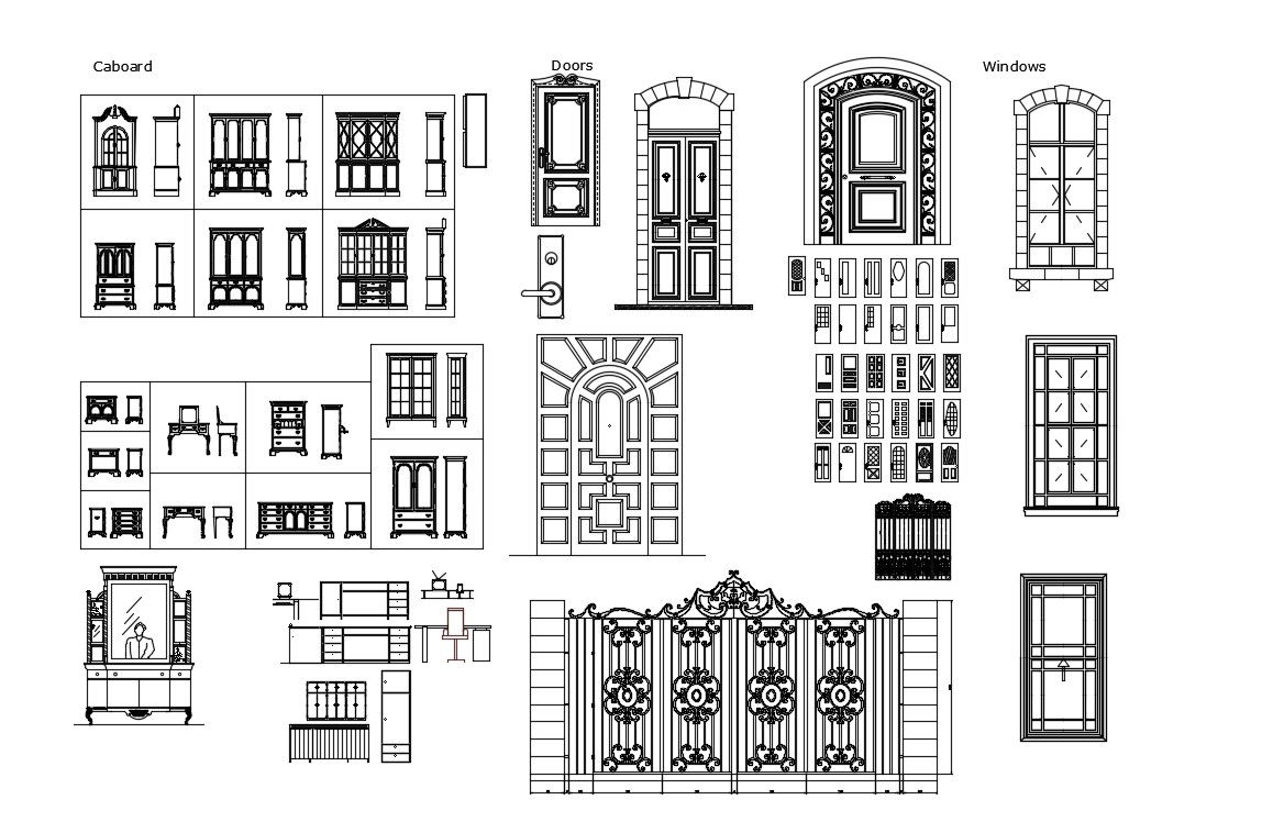 Autocad Door Blocks Free Download; elevation of door some furniture detail ,gate detail with all side elevation CAD file