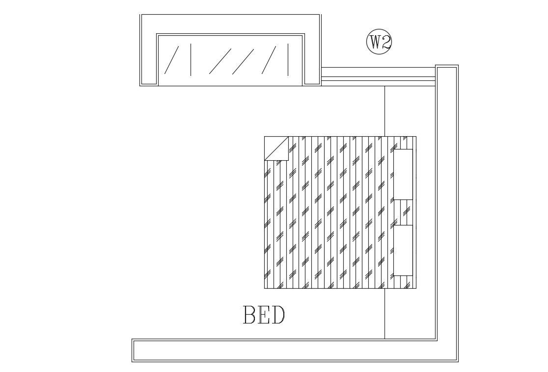 Layout plan design of bedroom details drawing that shows bedroom furniture blocks details of double bed download CAD file for free.