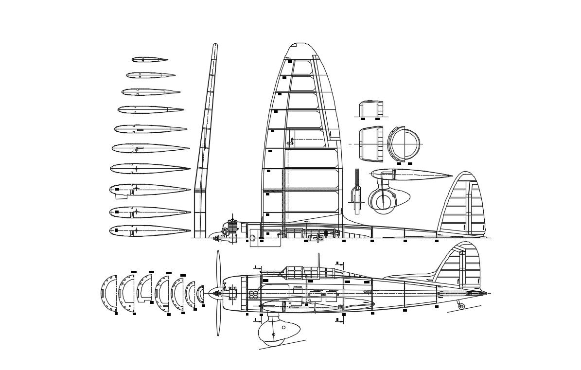 Aeroplane details CAD File ; detail of Aeroplane with plans wings in different levels DWG File download .