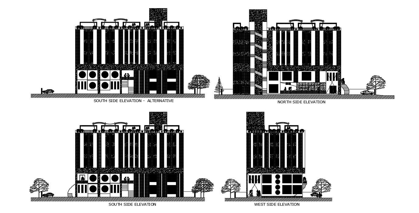 Download CAD drawing details of commercial building all sides of the elevation details drawing download.
