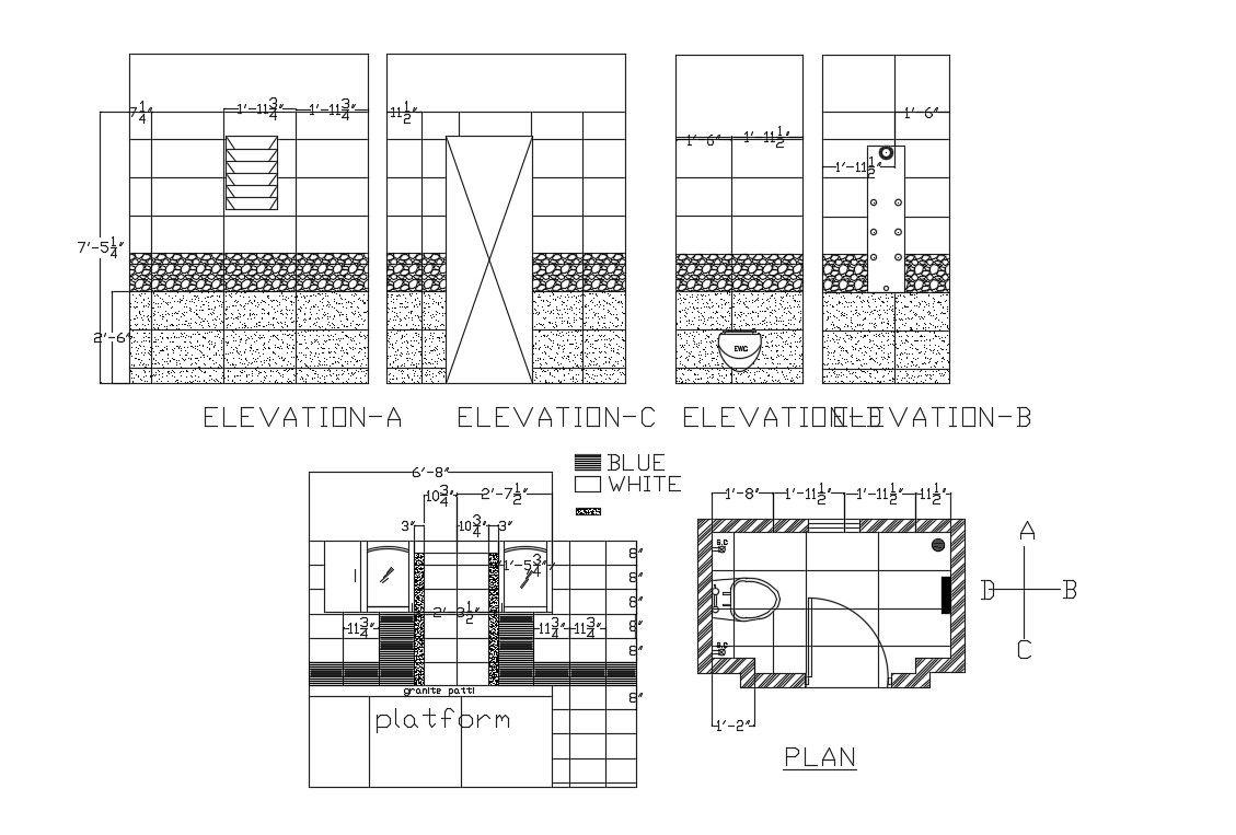 Toilet CAD Drawing; download AutoCAD file toilet CAD drawing influxes floor plan and sectional elevation with dimension detail. download the free DWG file of toilet drawing.