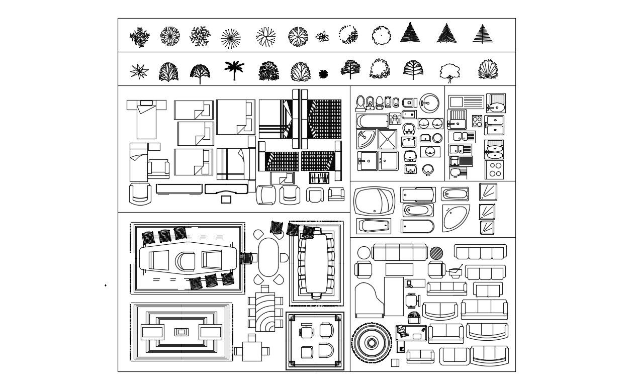 Furniture Cad Blocks Free Download ; cad furniture blocks with different types of furniture .bed chairs conference table ,sofa ,trees , sink ,bathtub and many more .