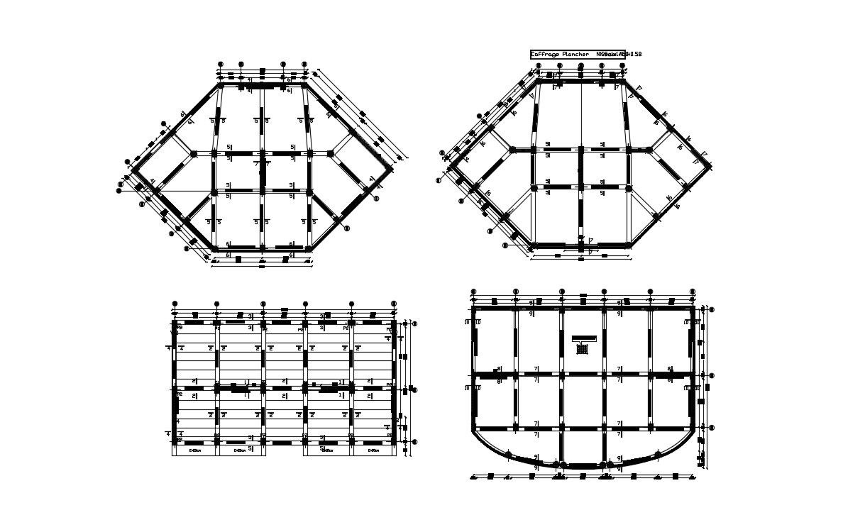 Pile Foundation Details Free DWG Files ; column and pile foundation center line with dimension for two type of buildings .