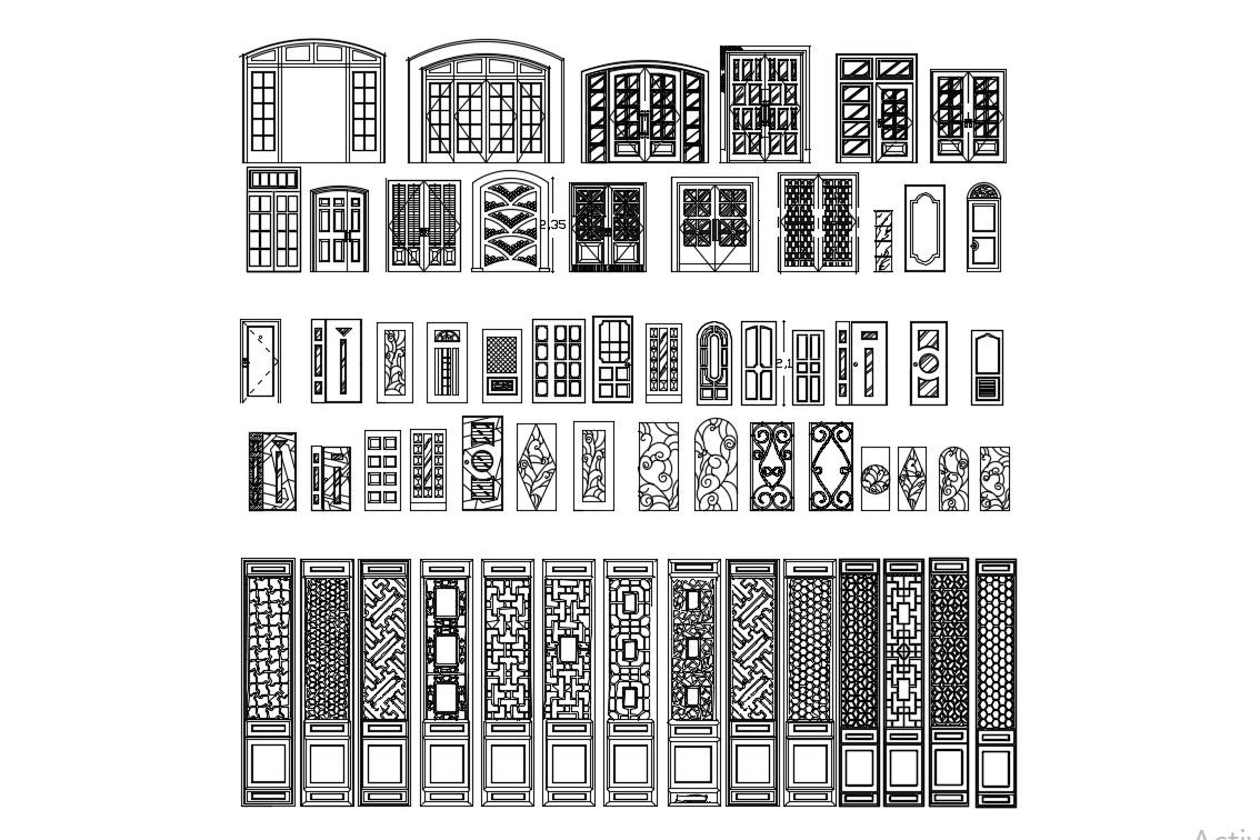 Autocad Door Elevation Free Download ; different types of doors and cnc cutting jali design and some design in ms material .