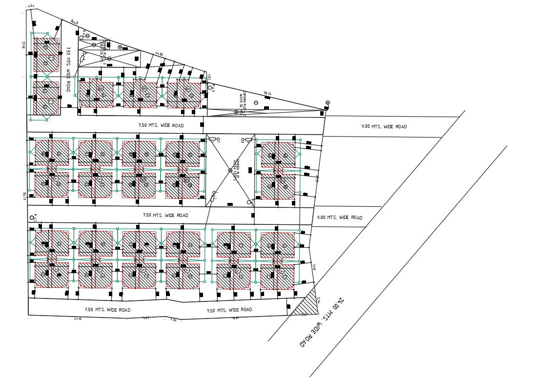 Housing Layout Plan DWG File; the architecture residence master layout plan includes house plan and road with dimension detail in AutoCAD format. download DWG file of architecture housing layout plan and learn urban planning.