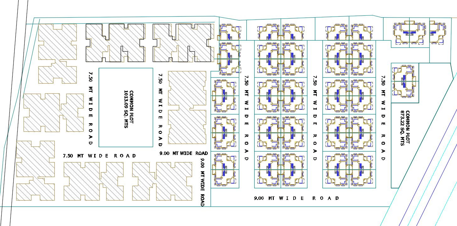 Town Residency CAD Drawing; the architecture residence master layout plan includes township society with road and measurement area. download DWG file of house master layout plan.