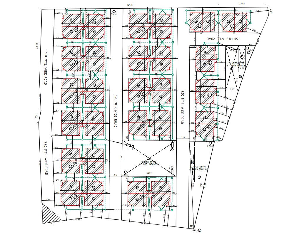 Housing Layout Plan DWG File; the architecture residence master layout plan includes house plan and road with dimension detail in AutoCAD format. download DWG file of architecture housing layout plan and learn urban planning.
