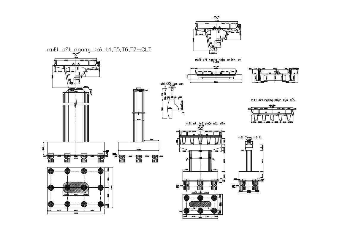 Bridge Construction Detail DWG File Download ; structure detail of bridge pillar and some bars detail
