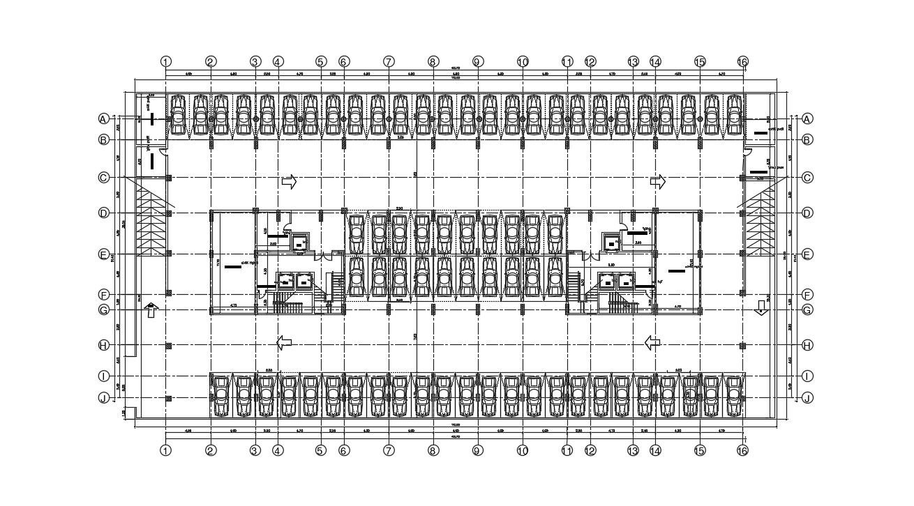 Parking Layout Design DWG File Download ; commercial parking layout include center line working plan dimension and stair ,lift detail ,ramp detail DWG File free Download