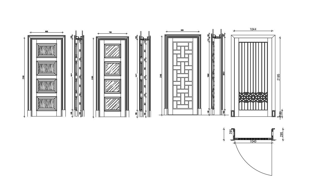 Door Detail Auto CAD Detail File Free Download ;wooden door detail with section many elevation with plan DWG File Free Download