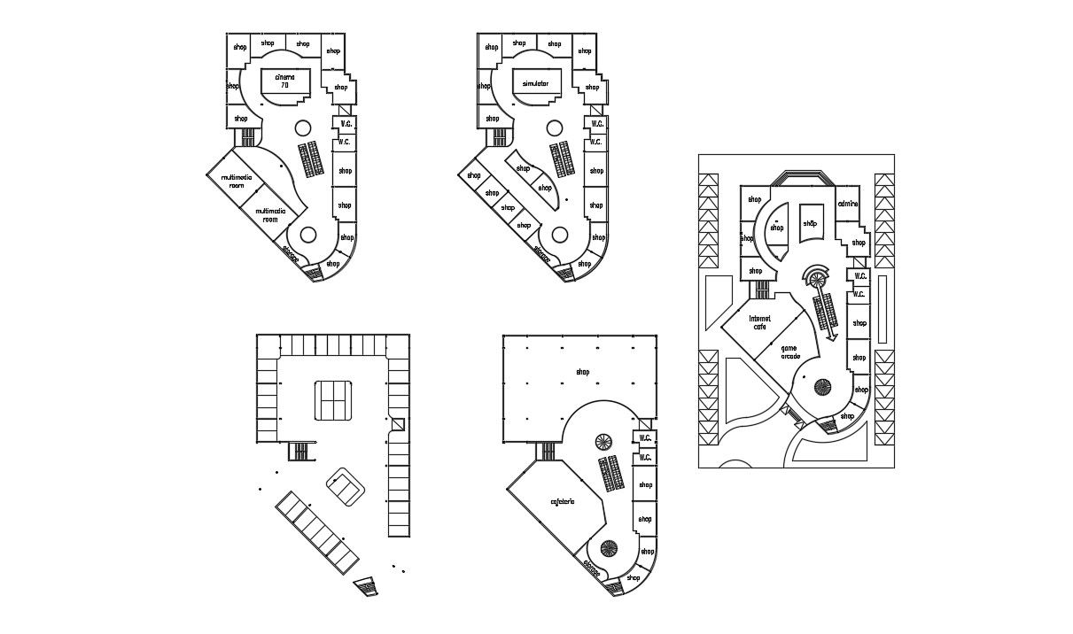 Commercial Plan AutoCAD File Free Download ; commercial planning with many different plan which related to shops,showrooms, stair toilets,cutout detail ,spiral stair Free Download CAD file .