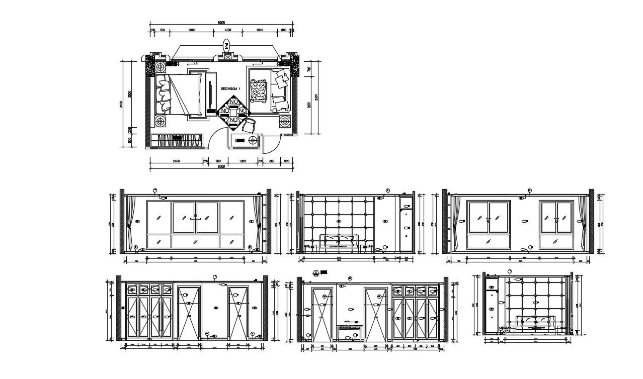 Bedroom Design DWG File Free Download ; planning of bed room with furniture layout all side wall elevation ,working dimension , door-window detail , section line , floor height detail AutoCAD Free Download