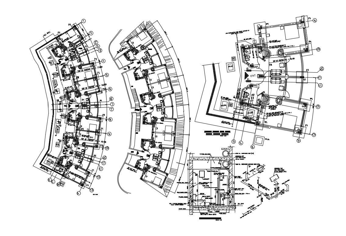 Design Hotels DWG File Free Download ;design of hotel with furniture detail , toilet detail , center line detail working dimension , elevation of toilet detail with sanitary Free CAD File Download .