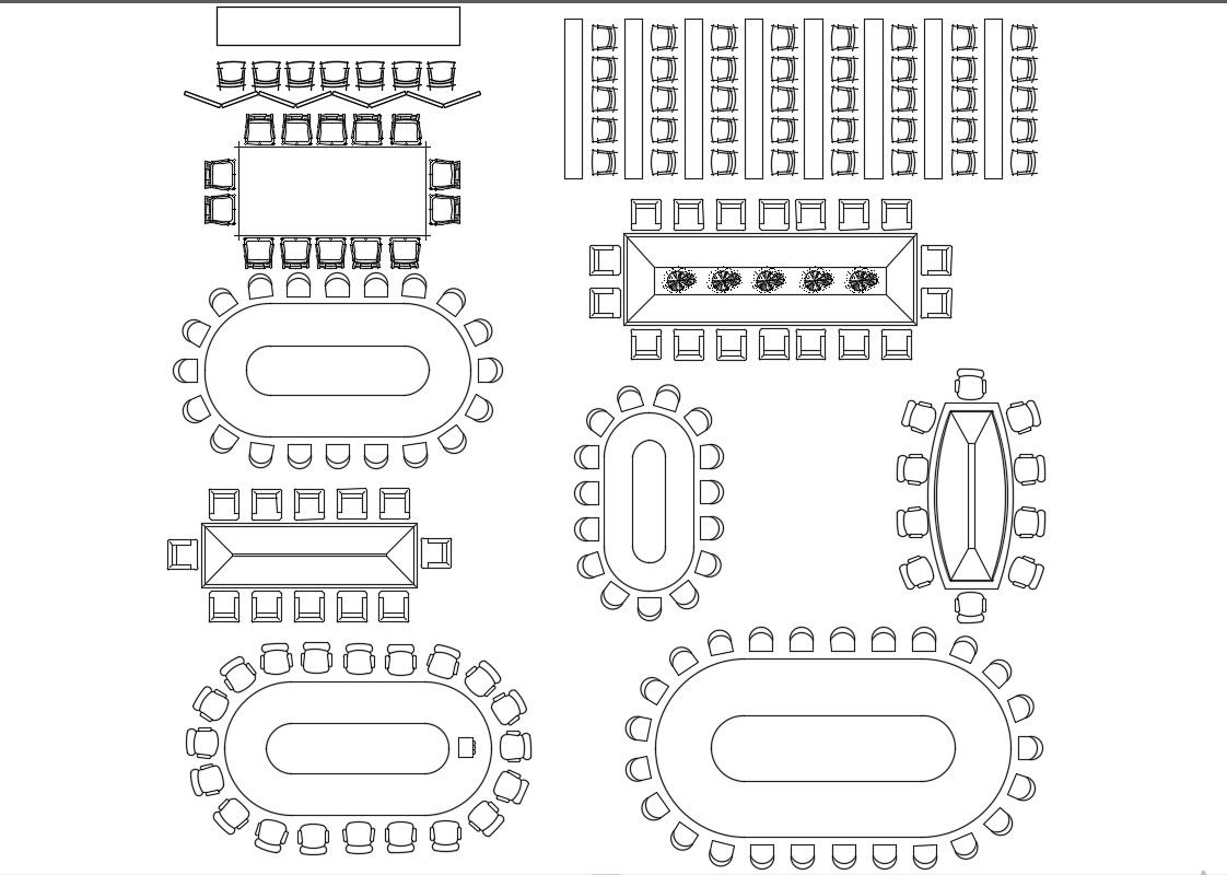 Conference Table CAD Block Free File Download ; conference table furniture detail with chairs and different shape free cad file download