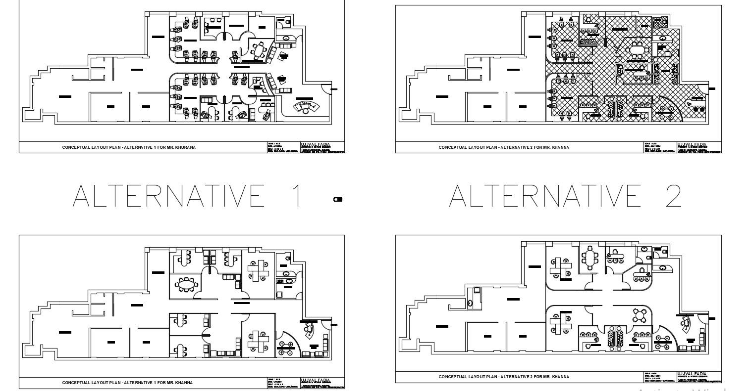 Office Commercial Design CAD File Free Download ; detail of office commercial building include furniture layout plan option-1 and 2 DWG File Free Download