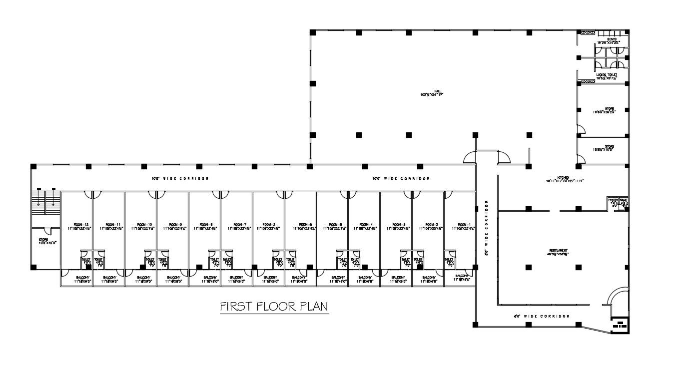 Design Hotels DWG File Free ; planning of holet rooms include services , hall , passages and many more detail i it , AutoCAD file free .