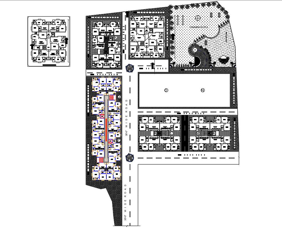 Floor Plan Apartment CAD File ; detail of master plan of apartment with many block and common plot detail with landscape design AutoCAD file .
