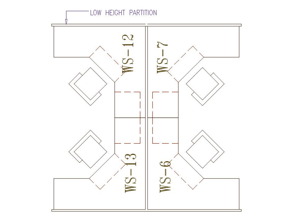 Work Desk AutoCAD Blocks; 2D CAD drawing includes a top view of office work desk with low hight partition.