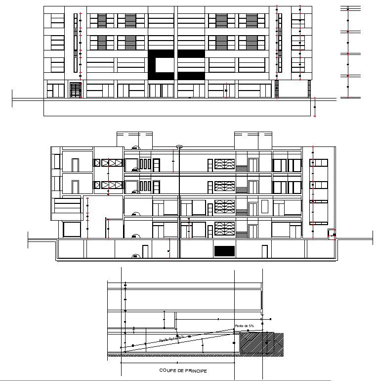 Apartment Building Section And Elevation Design DWG File; download the apartment architecture building section and elevation design with dimension detail in AutoCAD software.