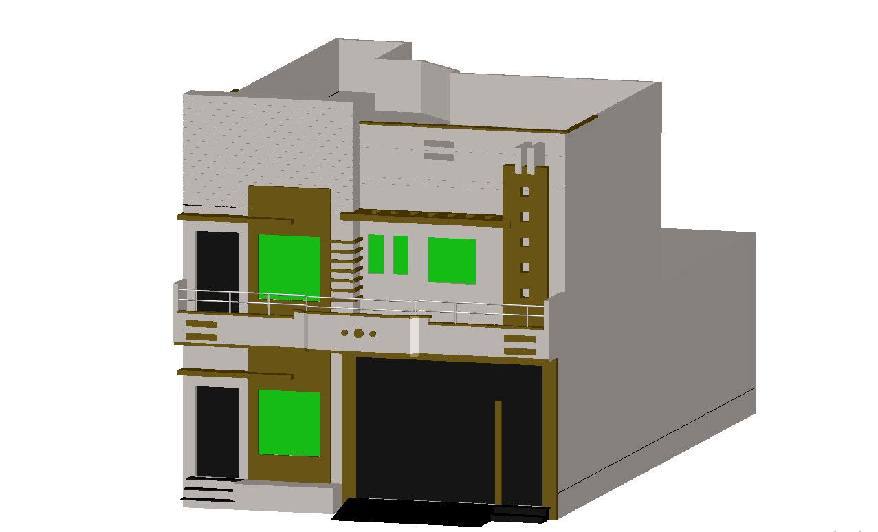 Bungalow Elevation 3D Rendered View CAD File Download ; house 3d with basic Rendered include door windows ,parapets, 2 story house CAD File