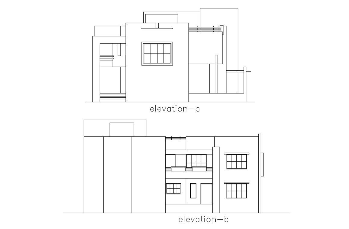 CAD drawing of bungalow elevation that shows house front and side elevation details download file for free.