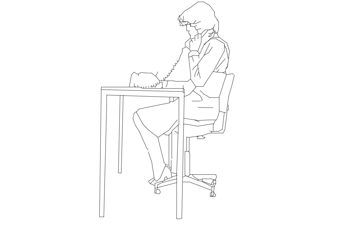 Side elevation drawing of a woman sitting on chair CAD blocks download file for free.