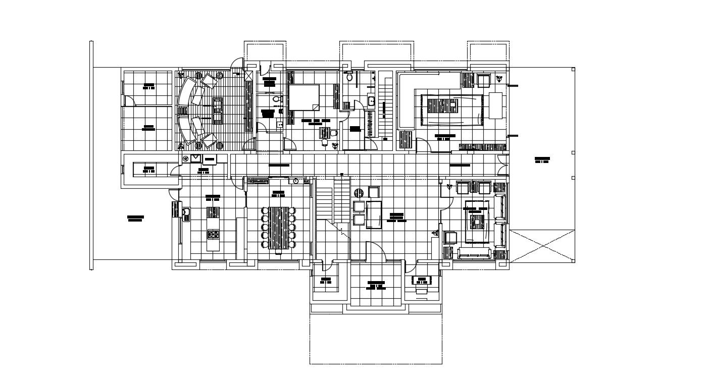 Residential Bungalow Furniture Layout Plan AutoCAD Drawing