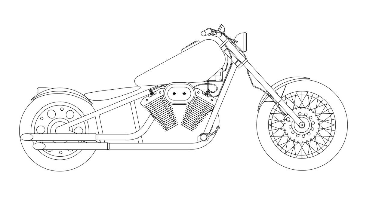 Side elevation drawing of two-wheeler motorbike CAD file download for free.