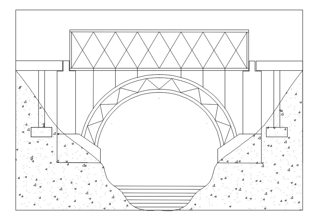 Arch Bridge Elevation DWG File; 2d CAD drawing of arch bridge elevation with concrete detail. download free AutoCAD file of arch bridge design.