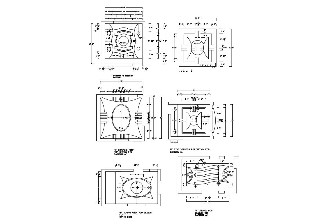 Residential house rooms ceiling design plan download CAD file which shows ceiling design pattern details with working dimension set details, and other unit details.