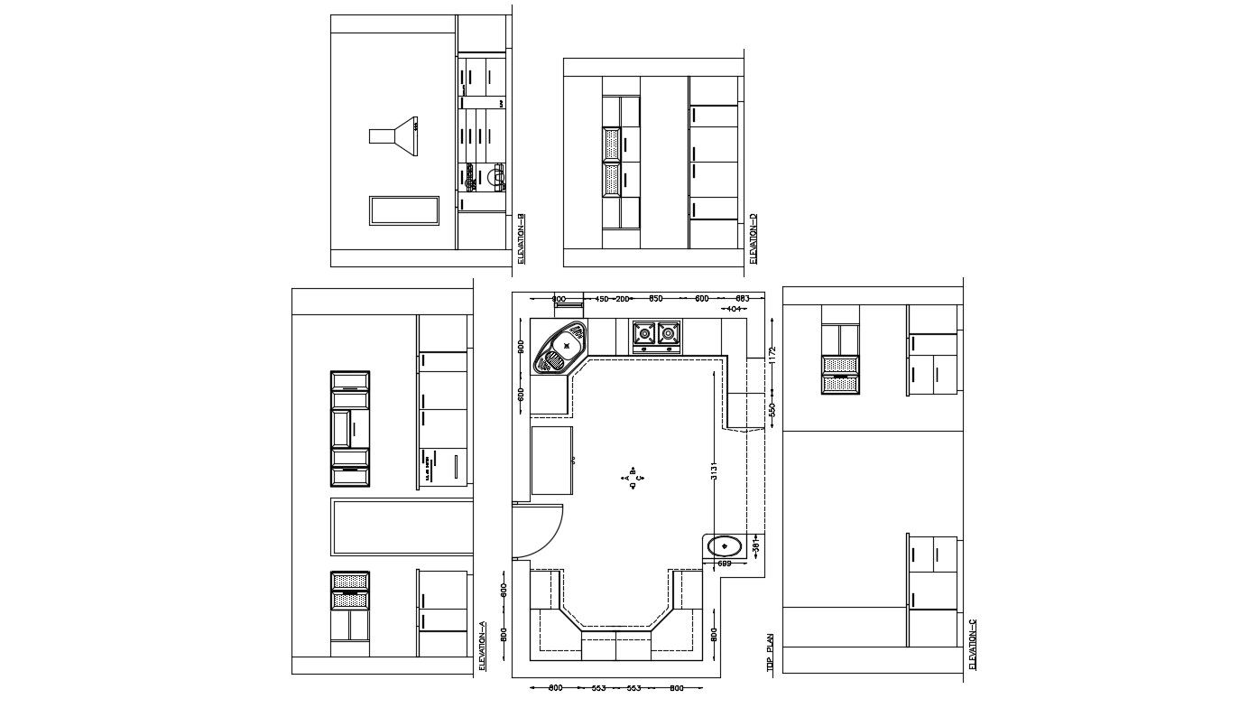 Kitchen Design Layout Furniture Plan Download CAD Drawing