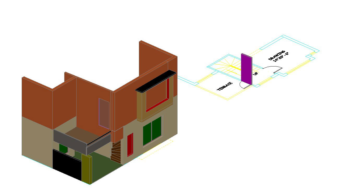 AutoCAD 3d House Tutorial Drawing; download 3d house model DWG file and learn 3d model tutorial in AutoCAD software.