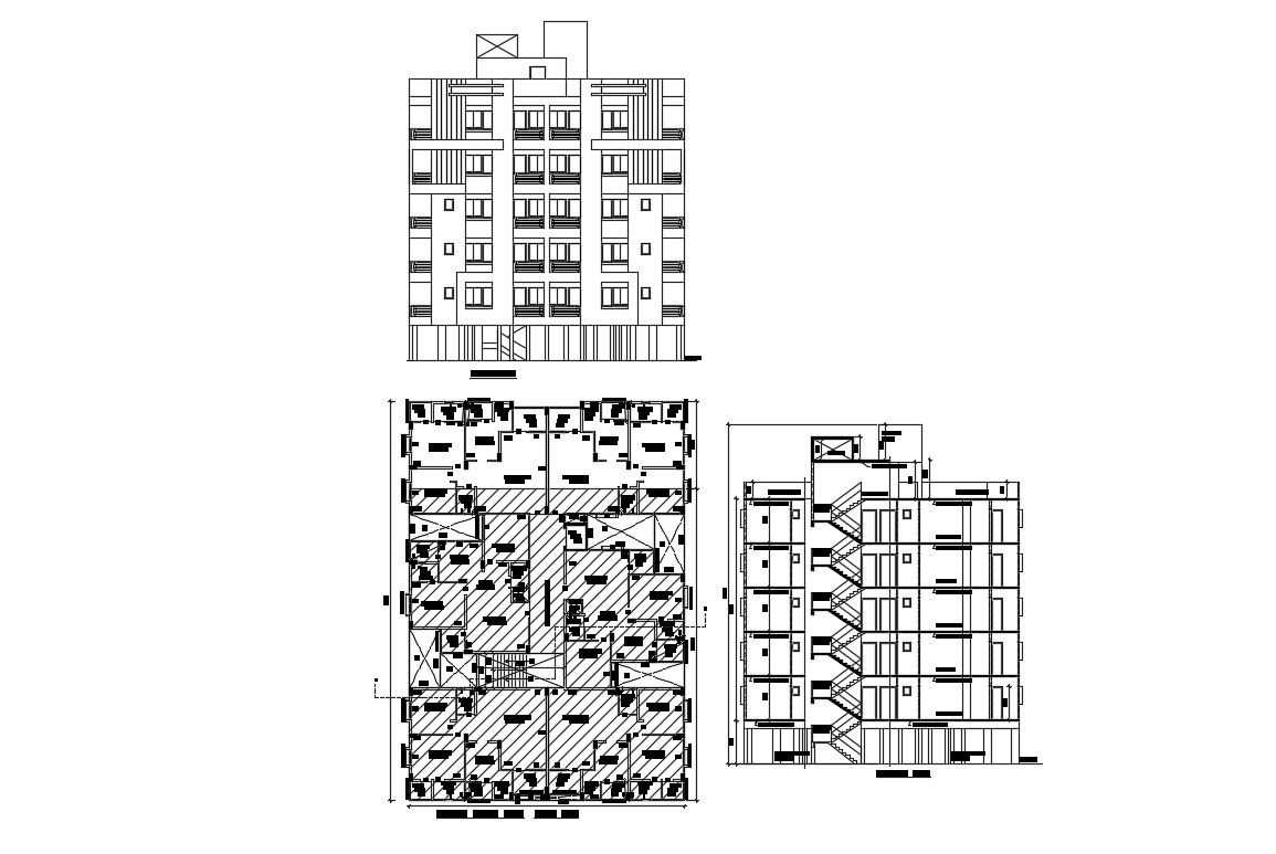 Apartment Plan Elevation and Section AutoCAD Drawing