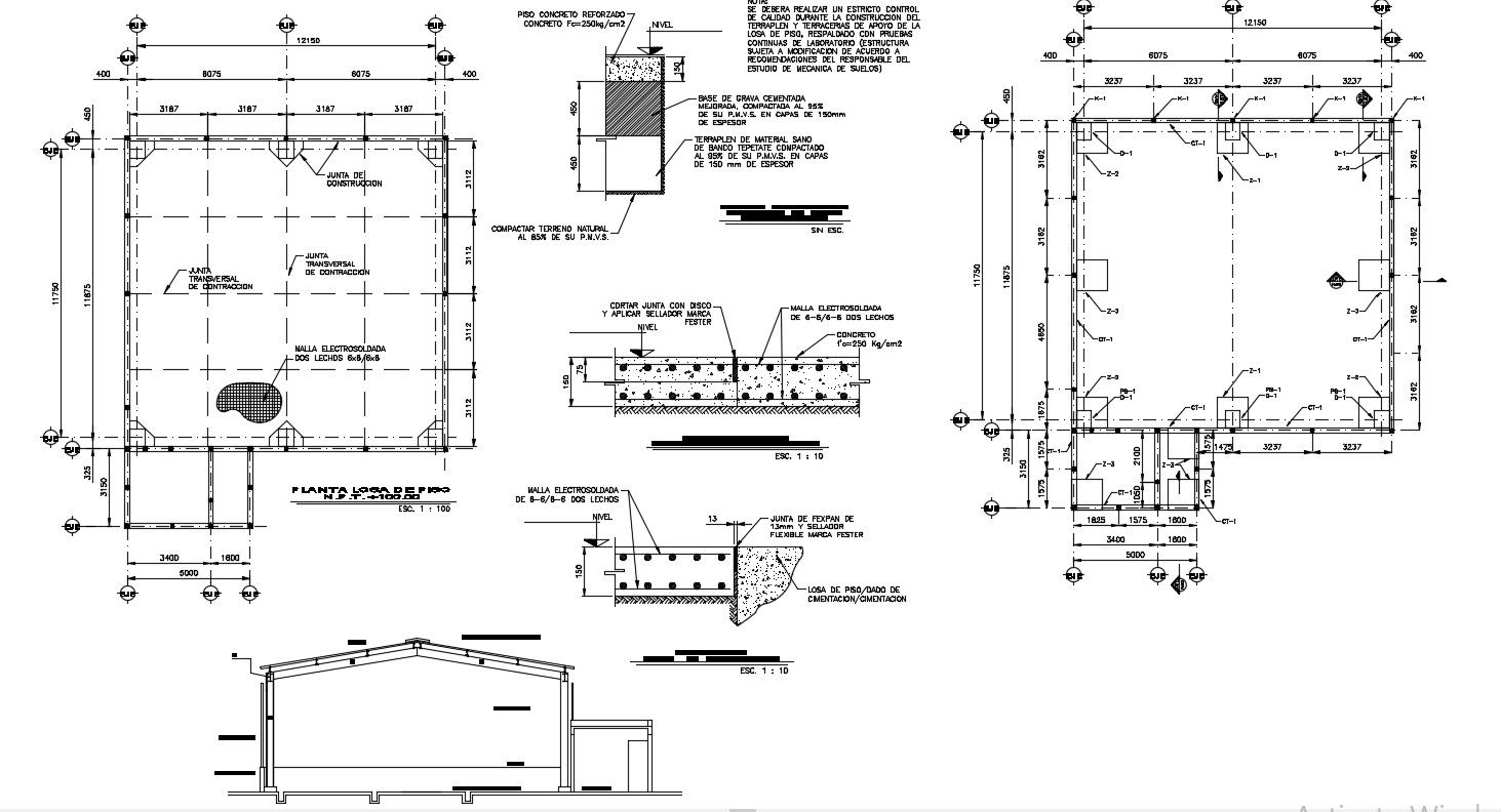 Foundation Details Working Drawing with Texting CAD File; detail of foundation with the centerline, working dimension, structure details, texting and many more detail CAD file