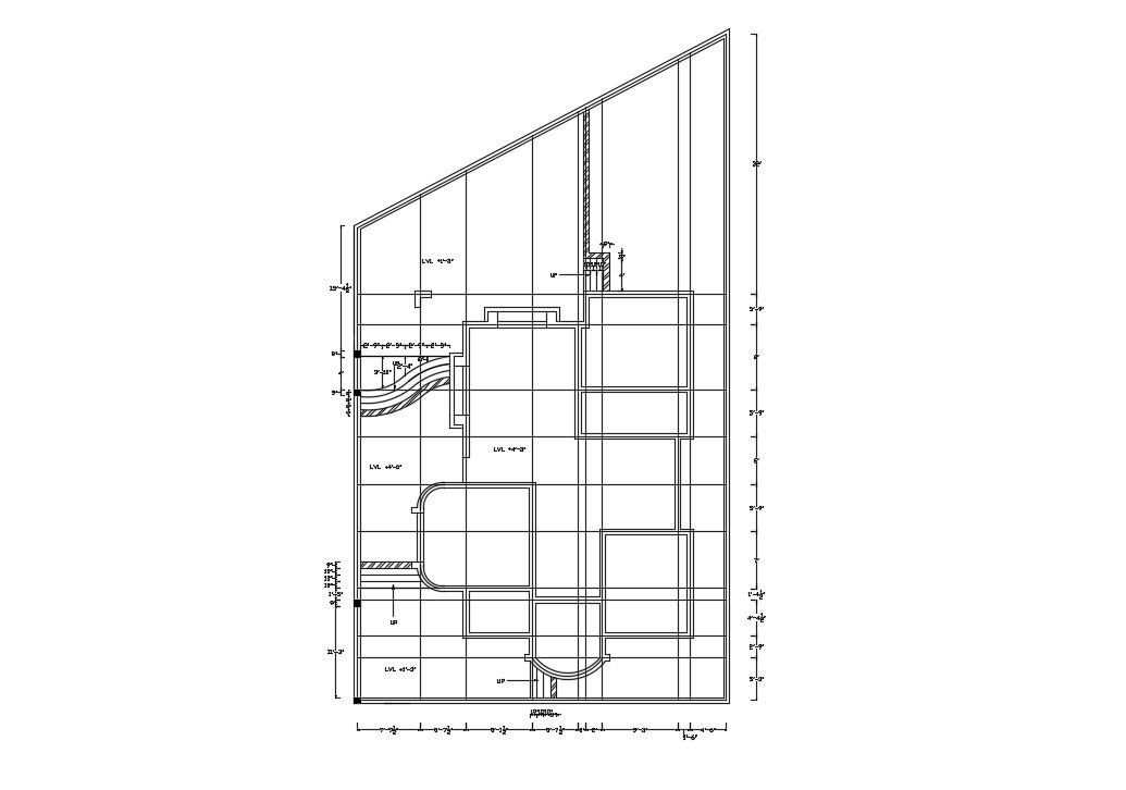 CAD drawing details of bungalow working plan that shows ground leveling details along with working dimension set details and various other details download file for free.
