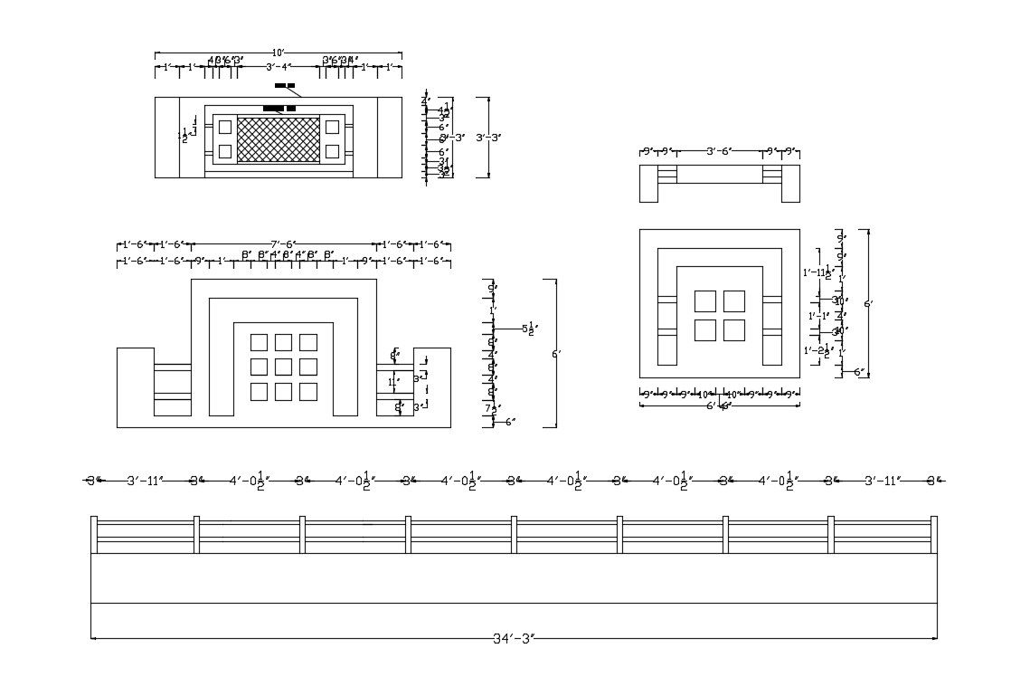 Elevation and plan details of compound wall design Download AutoCAD drawing that shows wall dimension details and other details for free.