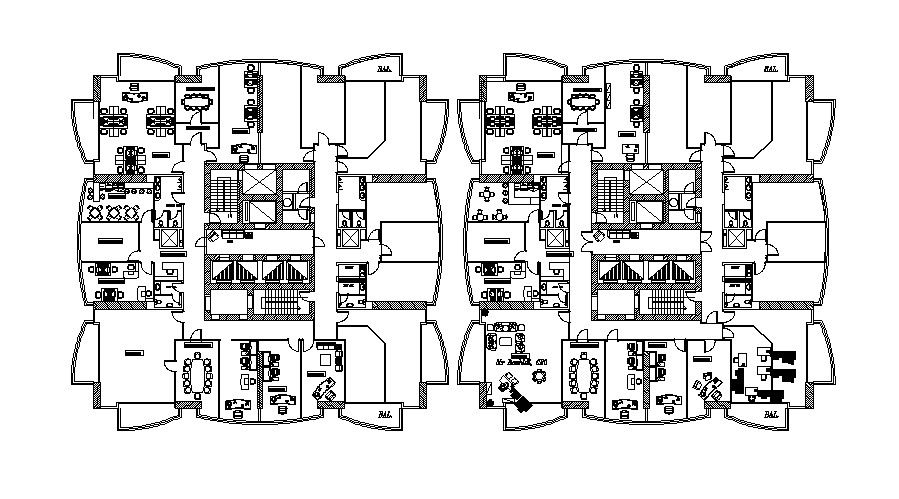 Office Building Floor Plan CAD Drawing; 2d CAD drawing of office building floor plan with furniture layout. download the AutoCAD office floor plan and collect the CAD drawing for future reference.