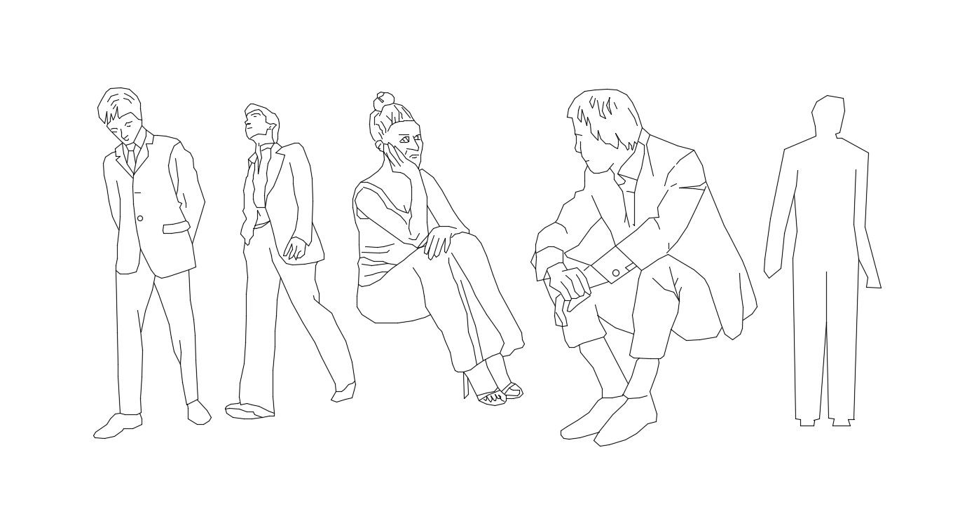 Free people AutoCAD block; download in free AutoCAD block which shows line drawing.