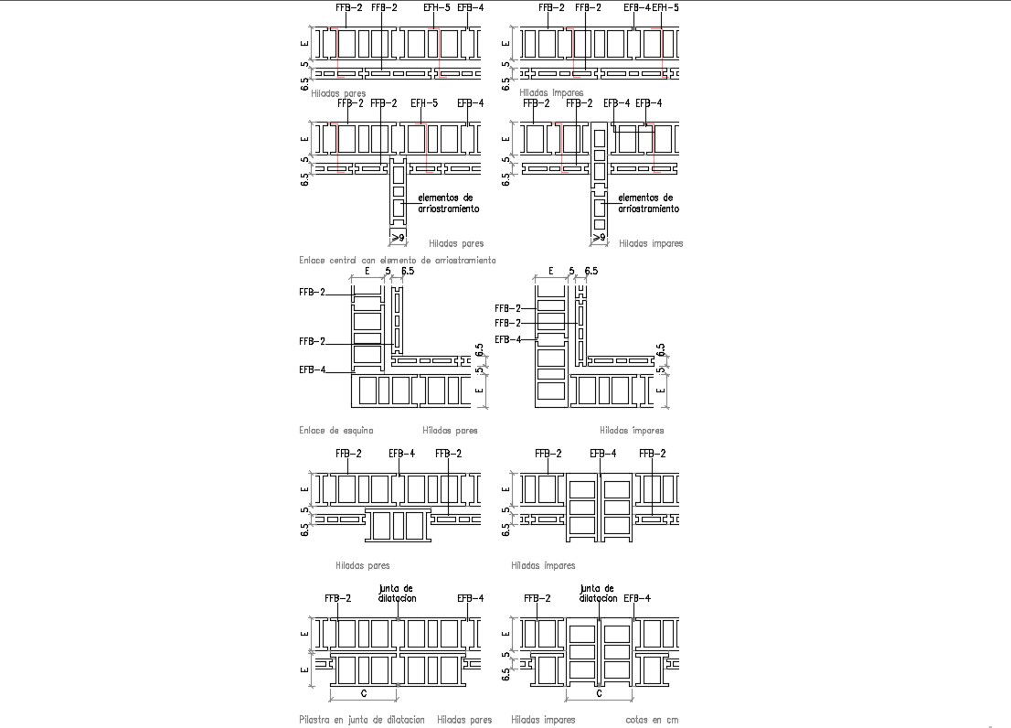 Brick wall Construction Bond Joint Design DWG File Free; detail of brick bond joints with some basic texting AutoCAD Free File.