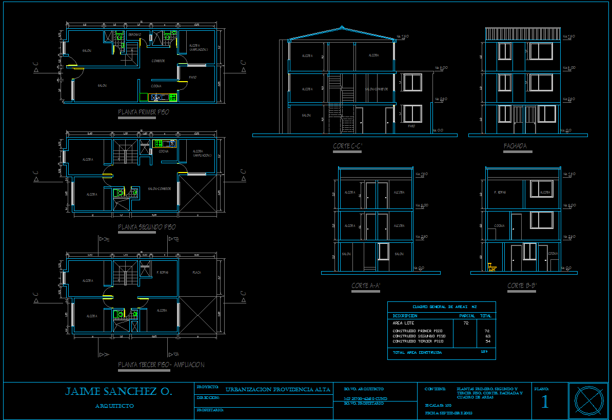 Three Floor Bungalow AutoCAD DWG File with Elevation and Section
