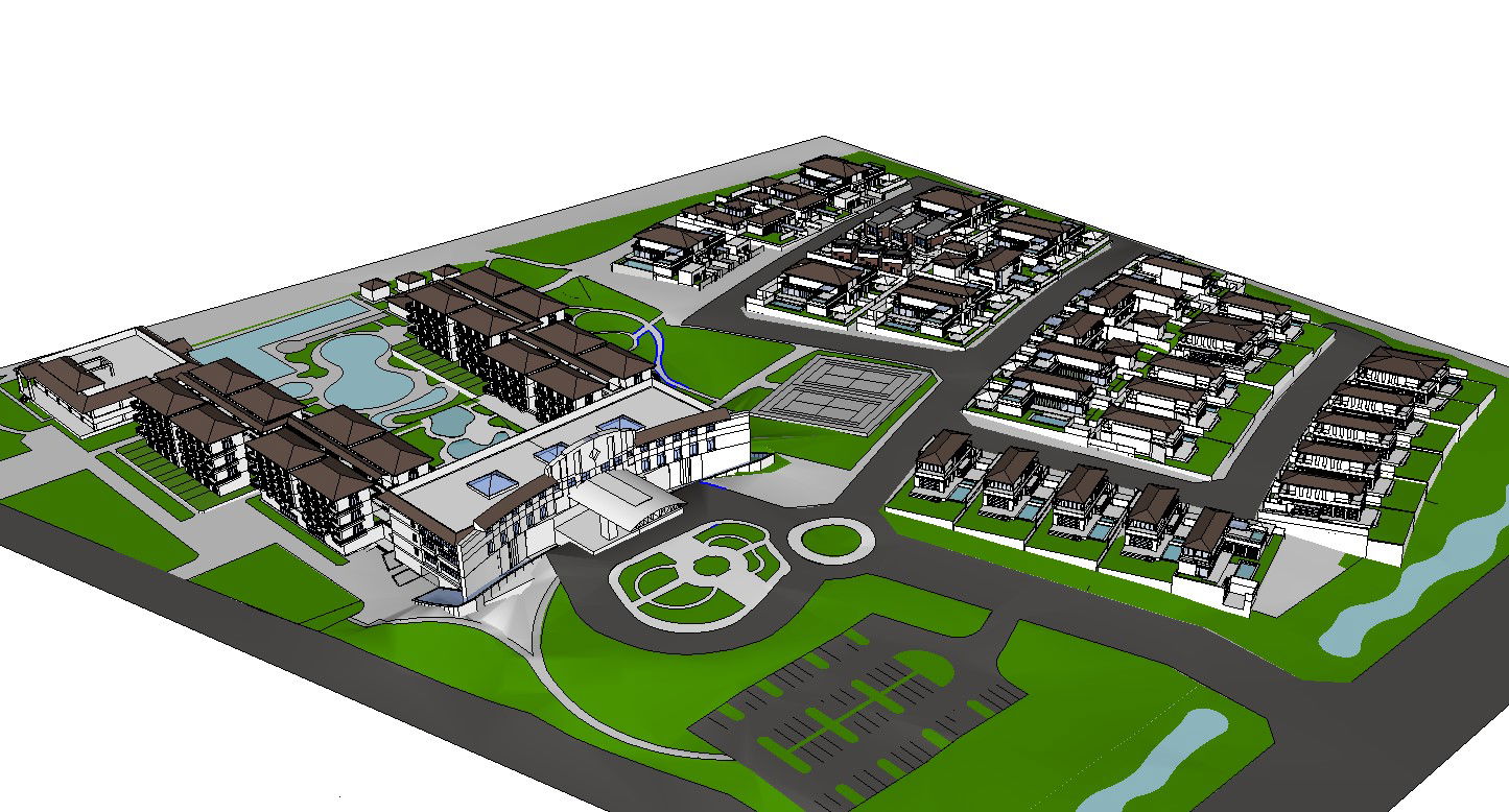 3d model design of residential area isometric view details along with existing house details, road networks, parking space, landscaping, and various other details download file.