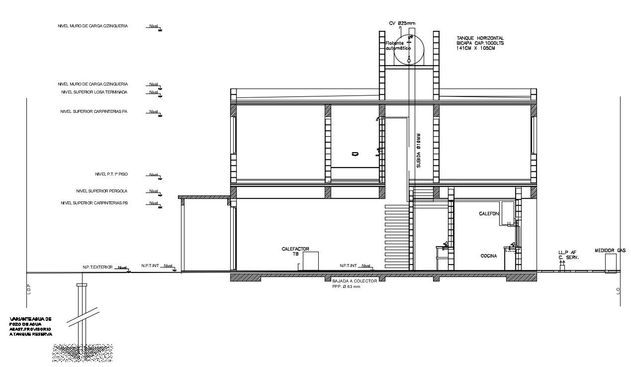 Residential house Sectional Design that shows house floor level details along with wall and flooring details, download CAD file for free.