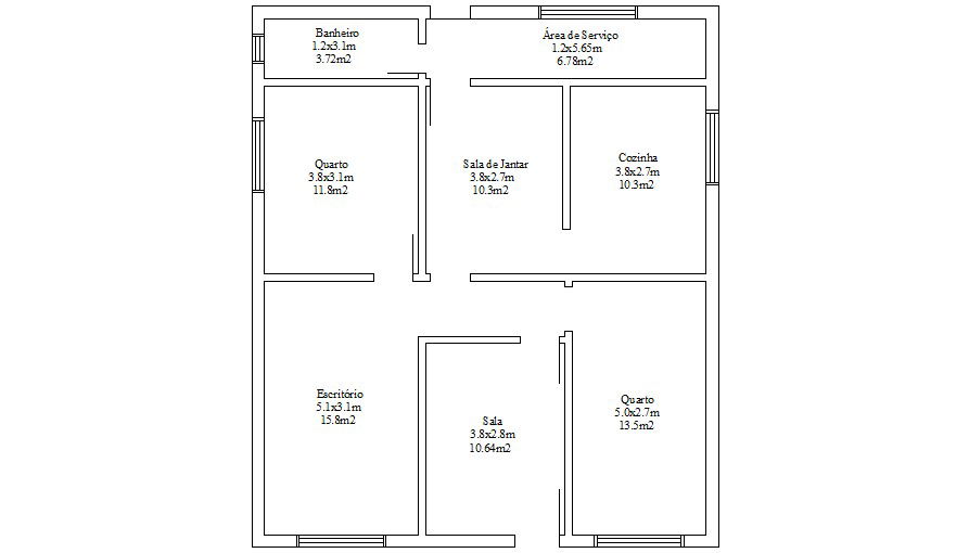 House architecture plan; includes the details of the washroom, kitchen, bedroom, dining hall, living room. It also shows the room interior dimensions.