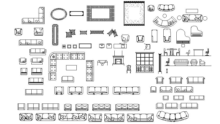 Sofa Set Furniture CAD Blocks Free DWG File Download