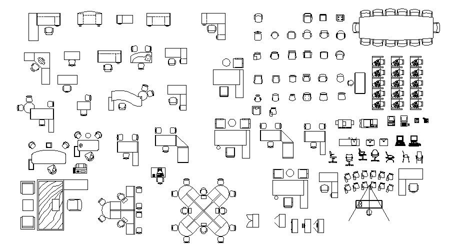 AutoCAD Office Furniture Blocks; download free AutoCAD file of office furniture CAD blocks shows a working desk, meeting table, office table and chair.