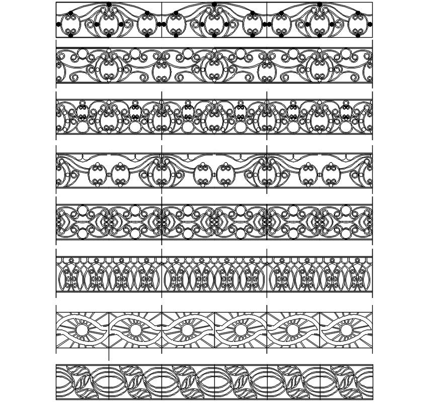 Wrought Iron Railing Free CAD Blocks; download free AutoCAD file different options of railing elevation design.