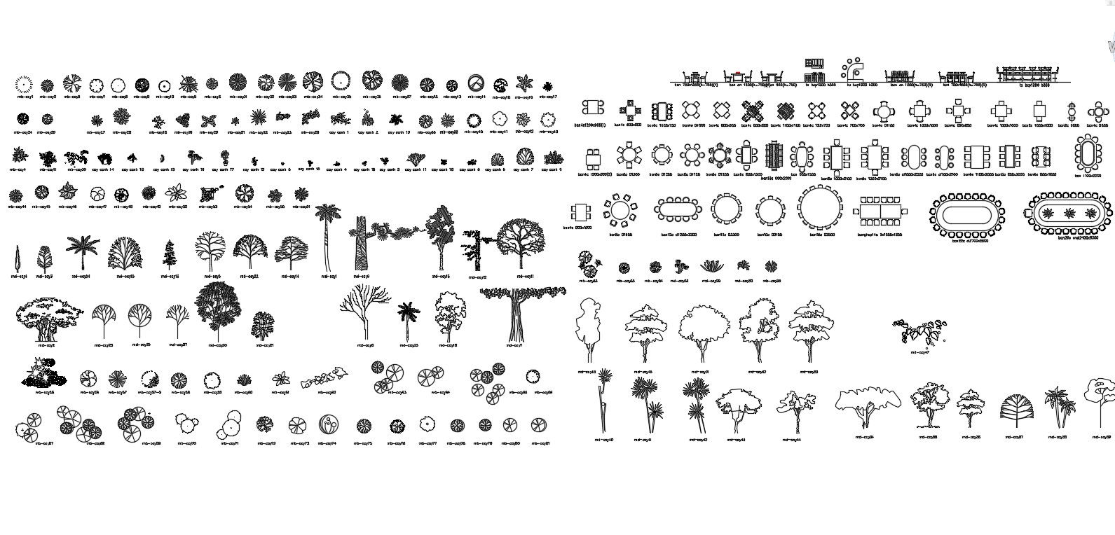 Cad Blocks Furniture Free Download; many furniture in this file like dining table, trees, and many more CAD file free downloads.