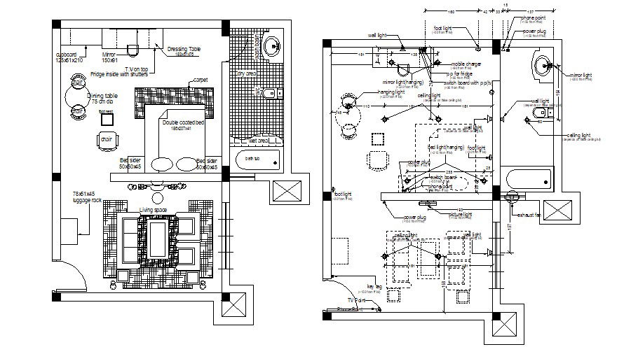 Master Bedroom CAD Drawing; the master bedroom interior design CAD drawing includes floor plan and electrical plan.