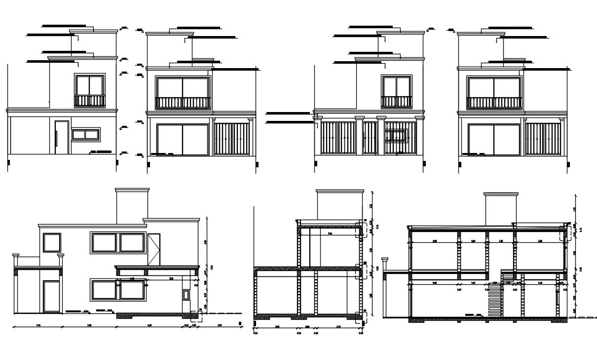 2 Storey Building Sectional And Elevation Design DWG File; download free AutoCAD file of house building section and elevation design with dimension detail.