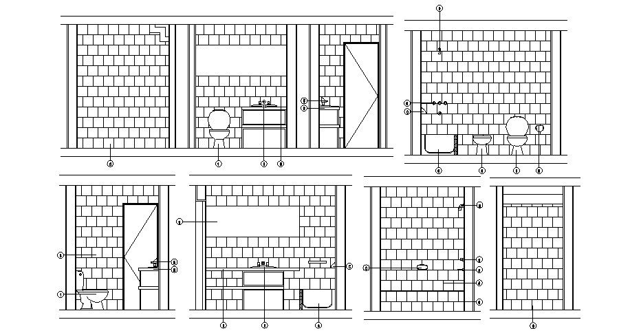 Bathroom Elevation Design DWG File; 2d CAD drawing of bathroom building elevation design DWG file with sanitary view detail.